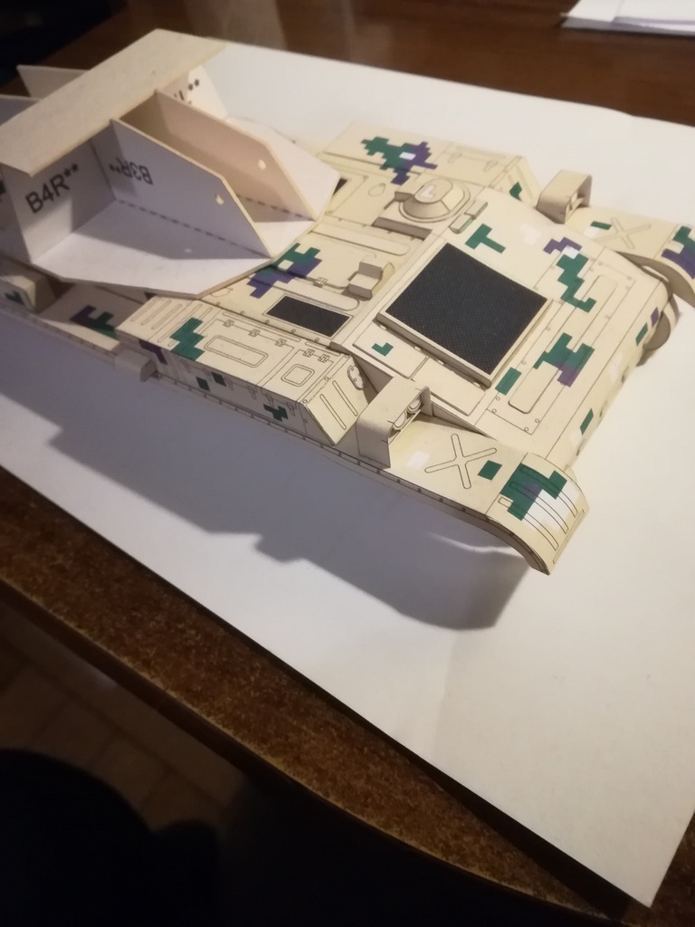 Zlikwidowałem boczne wizjery kierowcy i przedniego strzelca km. Podobnie z drzwiczkami wieży. Filtry lub cokolwiek to było na prawym błotniku też usunąłem. Postanowiłem też usunąć jedną rolkę podtrzymującą gąsienicę - zostały 3.